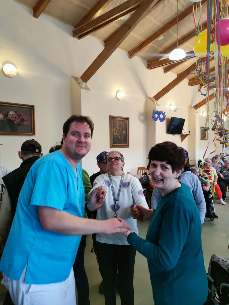 Dopoludnie sa u nás nieslo v duchu fašiangovej zábavy, tanca, chutného pohostenia, kávičky a milých stretnutí. Všade rozvoniavali šišky a my sme sa spolu s našimi prijímateľmi rozlúčili s týmto veselým fašiangovým obdobím.