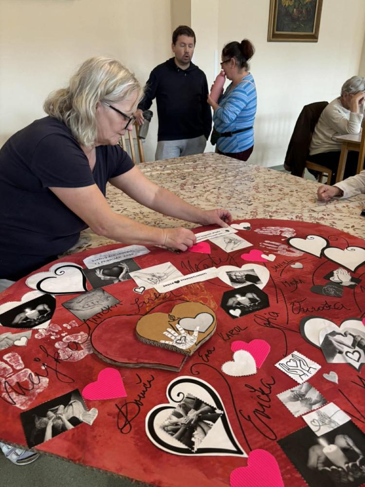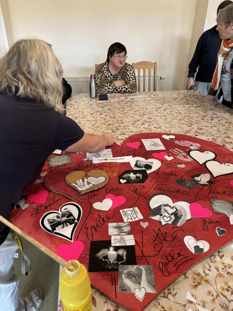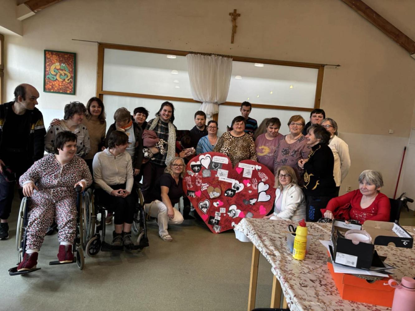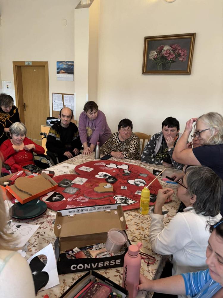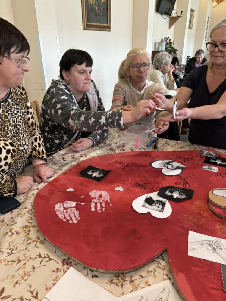 Pri príležitosti Svetového dňa chorých pripomenuli hodnotu zdravia, vzájomnej blízkosti a starostlivosti. "Cieľom aktivity" bolo podporiť pocit bezpečia, prijatia a vzájomnej starostlivosti medzi nami všetkými. Spoločne sme si jednoduchými slovami povedali, že dnes myslíme na ľudí, ktorí sú chorí, aj na tých, ktorí sa o nich s láskou starajú. V tvorivej časti prijímatelia lepili papierové srdcia, do ktorých vkladali symboly rúk (pomoc), srdca (starostlivosť) a svetla (nádej). Každý pridal kúsok seba – svoje meno, dotyk, myšlienku. Výsledkom je veľké spoločné srdce, ktoré je krásnym symbolom spolupatričnosti a dobra medzi nami Ďakujeme všetkým - spoločne sme vytvorili niečo, čo má skutočný význam.